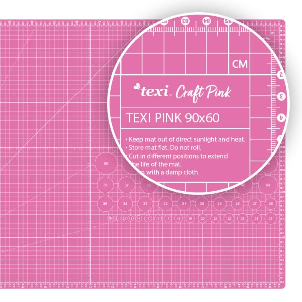 Любители пэчворка используют дисковые и ремесленные ножи вместе со специальным ковриком. Коврик Texi Pink 90x60 уникален тем, что сделан из особого материала, который после раскроя восстанавливается. Таким образом, вы можете разрезать материалы, не беспокоясь о их повреждении. Мы отметили углы и параллельные линии на коврике, для того чтобы вам было проще резать.