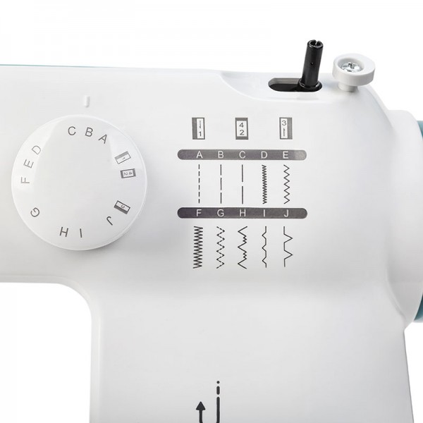 6-сегментный транспортер ткани качественно справится с продвижением многих типов материала. Благодаря дополнительным передним зубцам на рейке транспортера, машинка будет легко продвигать тонкие ткани от самого края или сложные переходы слоев джинсовых материалов.