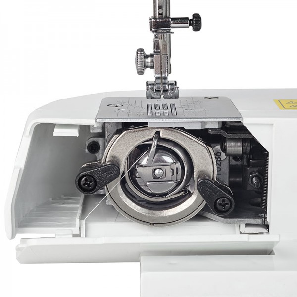 У модели B15 металлический вертикальный челнок, который является сердцем всего аппарата, ведь челночное устройство отвечает за связывание нитей, и тем самым за шов.