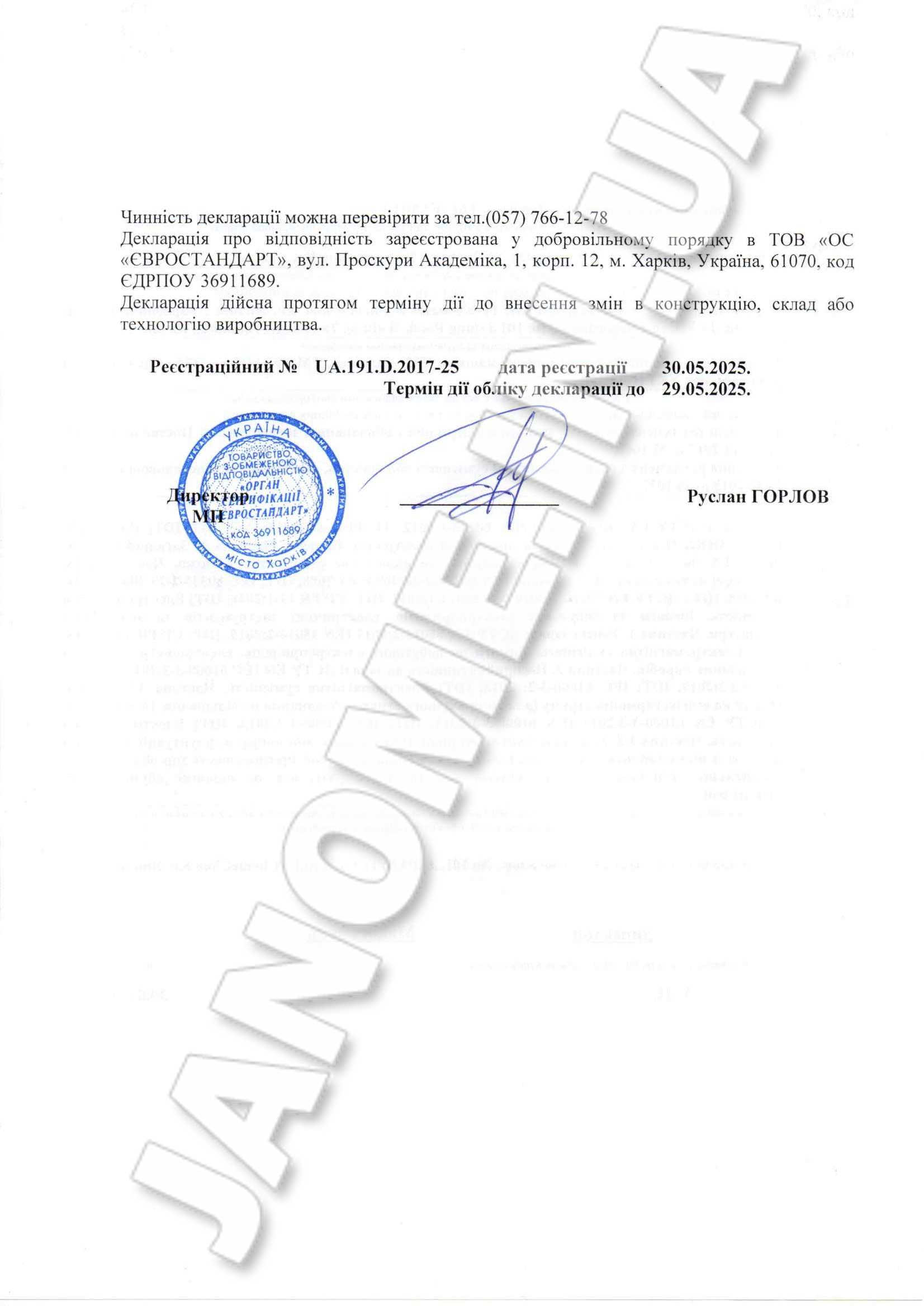 Шановні покупці, представляємо сертифікати на нашу техніку. Це доказ того, що вся наша продукція схвалена ДСТУ і відповідає всім нормативам і вимогам.