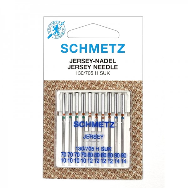 Голки SCHMETZ з кулеподібним вістрям, для трикотажу і джерсі, 10 шт. - 4x70, 4x80, 2x90. Підходять для більшості побутових швейних машин.