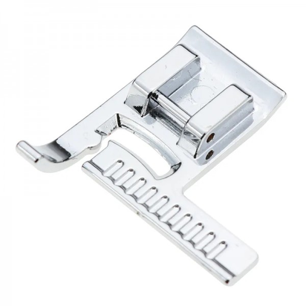 Лапка для оздоблювальних швів з лінійкою зручна для прокладання рядків на рівній відстані один від одного або від краю виробу.