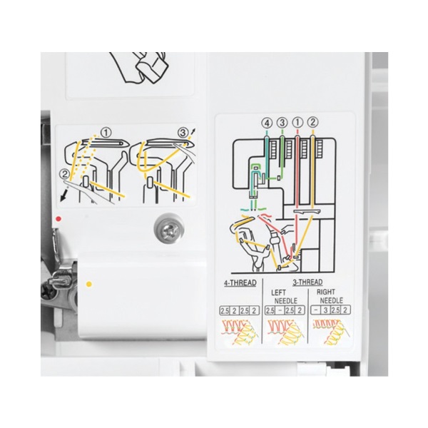 Спрощена система заправки будь-яких ниток і можливість відключати роботу ножа - корисні функції, за рахунок яких користувач зможе експериментувати при обробці різних виробів. Для перенесення оверлока на незначні відстані можна скористатися вбудованою ручкою, розташованою на верхній частині корпусу.